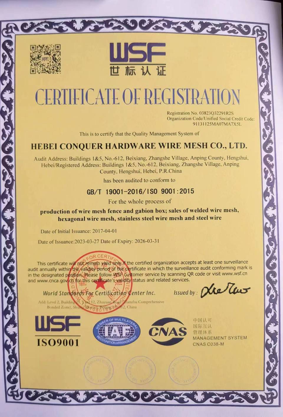 Hebei Conquer Hardware Wire Mesh Co., Ltd ottiene un notevole successo alla 137a Fiera di Canton
