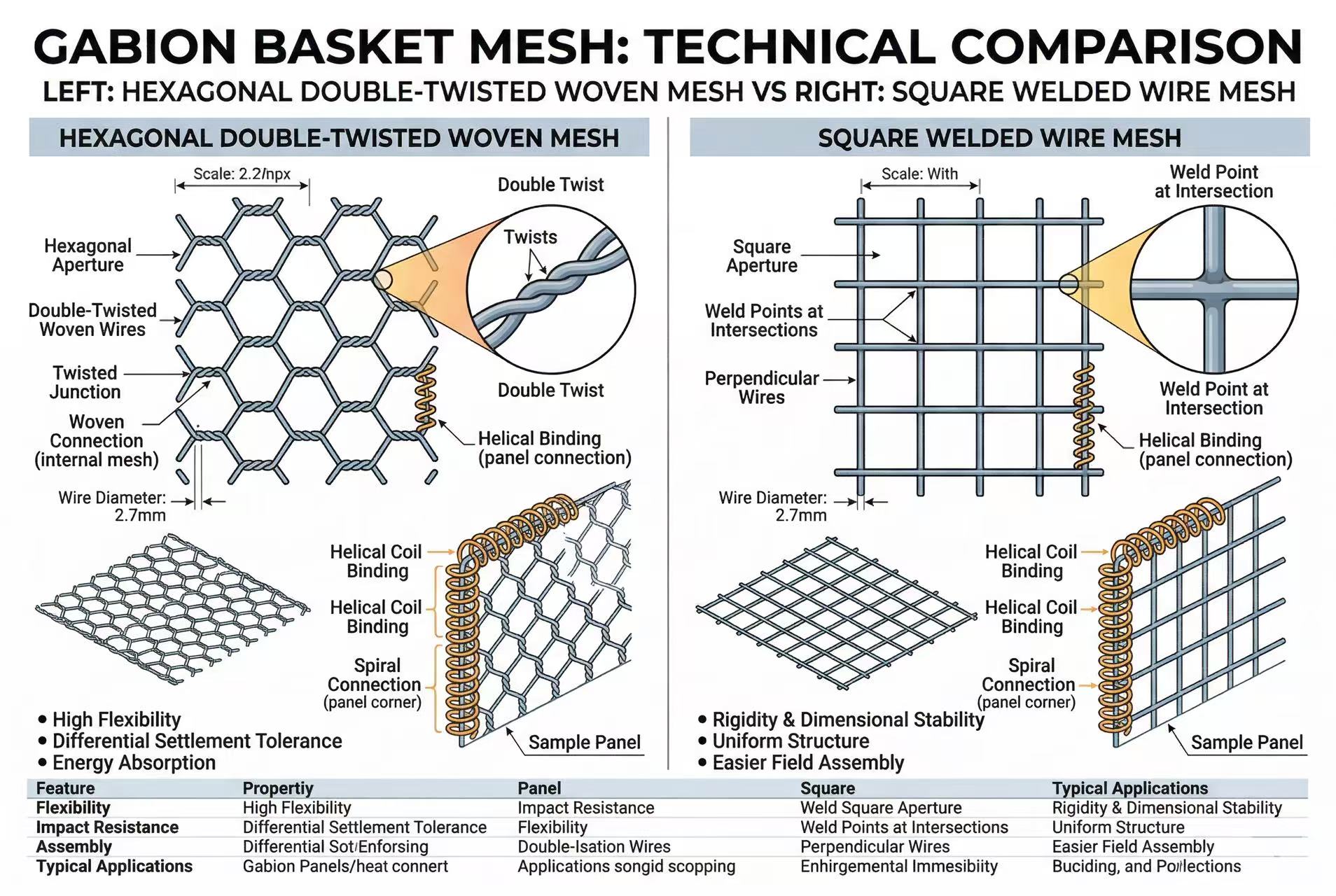 Quando gli ingegneri specificano i cestini di gabbioni per il controllo dell'erosione, i muri di sostegno o il paesaggio, devono affrontare una decisione critica: cestini di gabbioni saldati o ritorti (tessuti)? Questa scelta influisce sull'integrità strutturale, sull'efficienza dell'installazione, sulla durata e sui costi. Questo confronto completo ti aiuta a decidere.