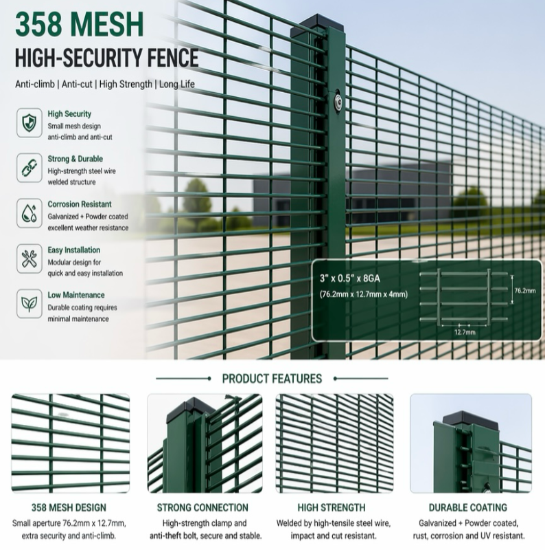 Tutti i 358 pannelli di recinzione sono zincati a caldo (rivestimento di zinco ≥65μm) prima del rivestimento in PVC/polvere, garantendo una protezione completa dalla corrosione anche nei punti di saldatura. Ampio inventario di pannelli HDG semilavorati pronti per il rivestimento in colori personalizzati, garantendo tempi di consegna rapidi per ordini all'ingrosso. Struttura di 72.000 mq certificata ISO 9001:2015.